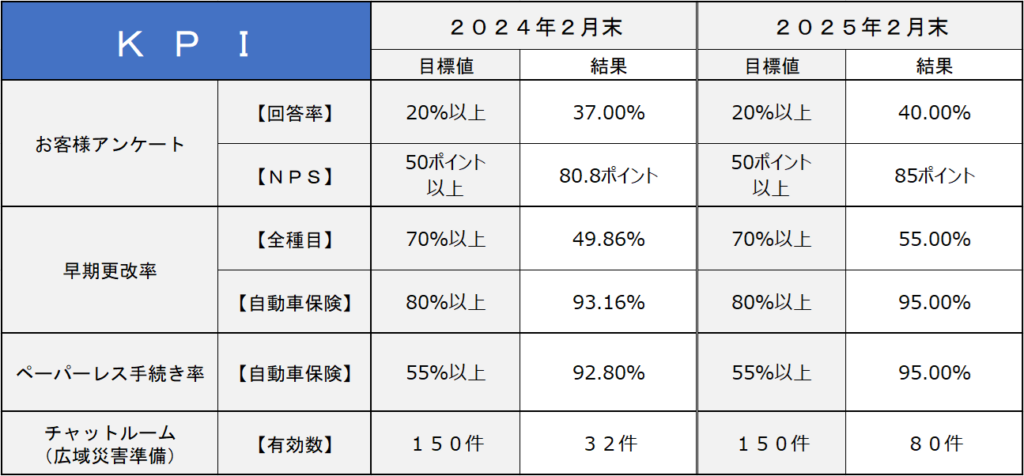 当社が定める「顧客本位の業務運営」の定着状況を評価するための指標(KPI)は以下の通りです